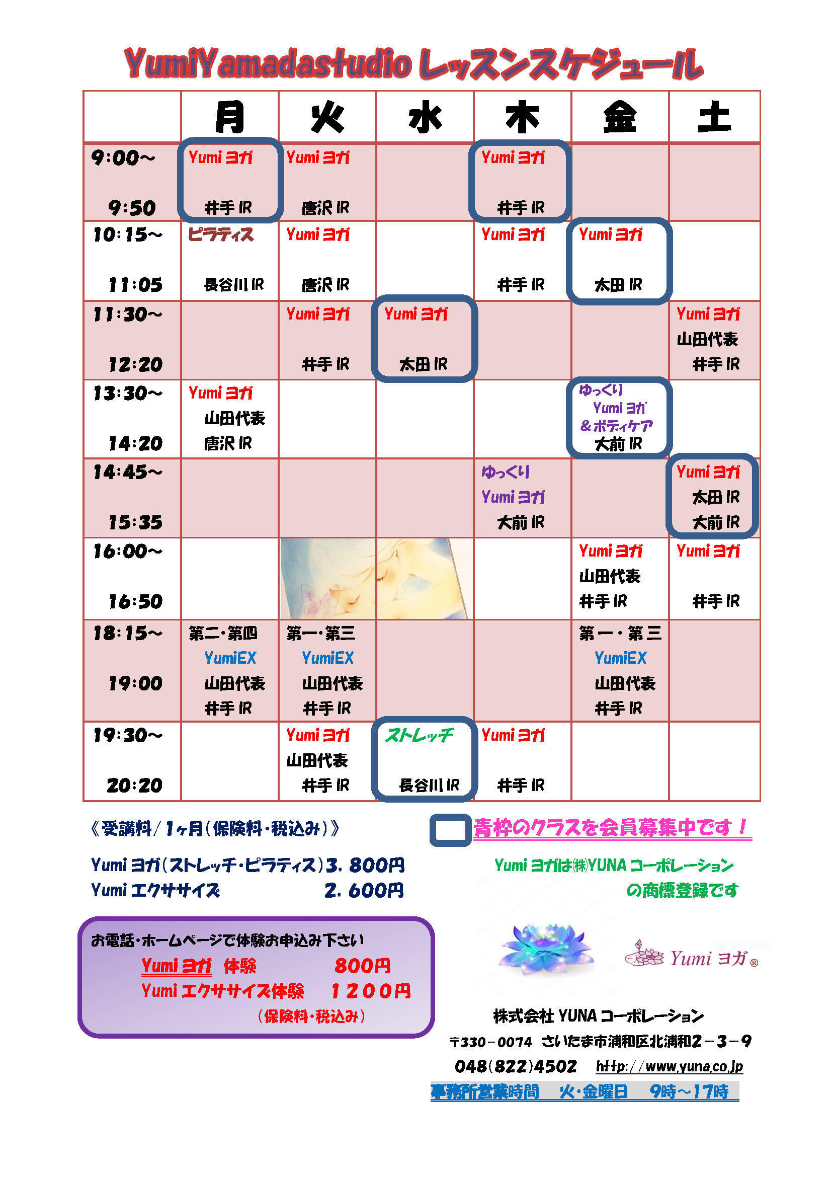 YumiYamadastudioレッスンスケジュール2020.8月